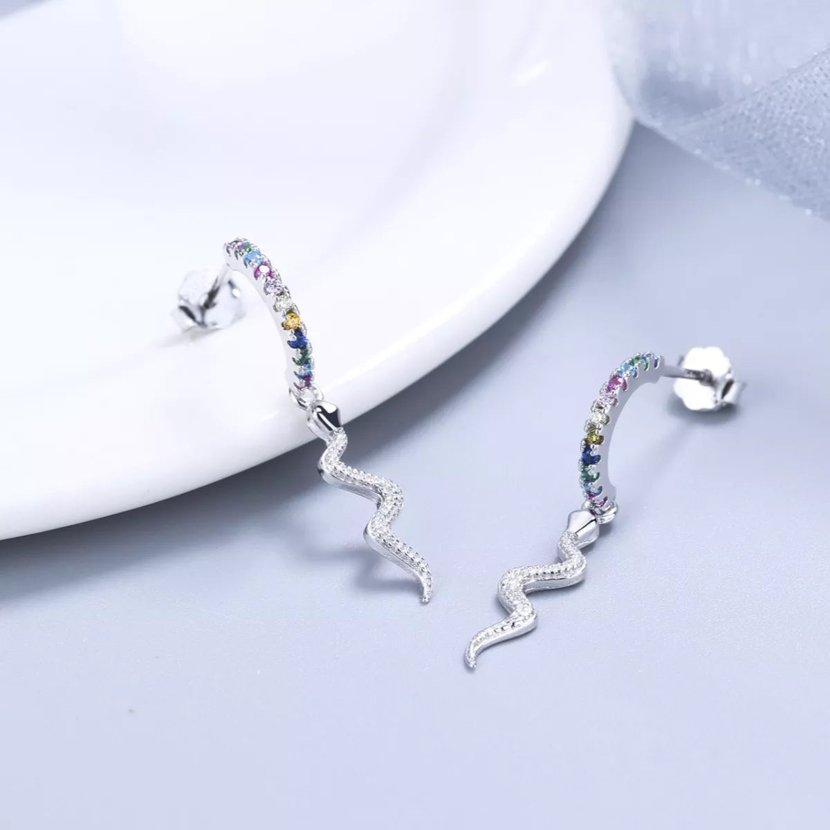 925 Sterling Silver Rainbow Zircon Geometric Earrings