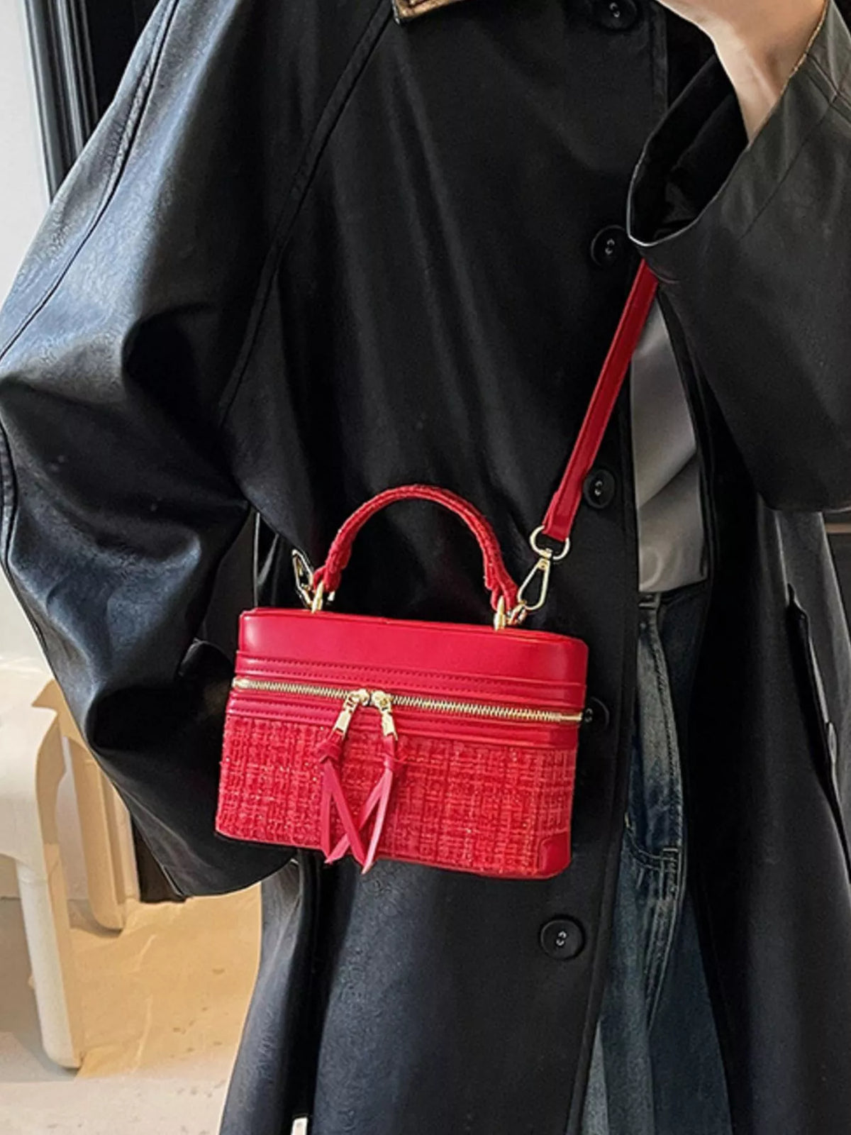 Boxy Top Handle Crossbody Bag - Red / ONESIZE
