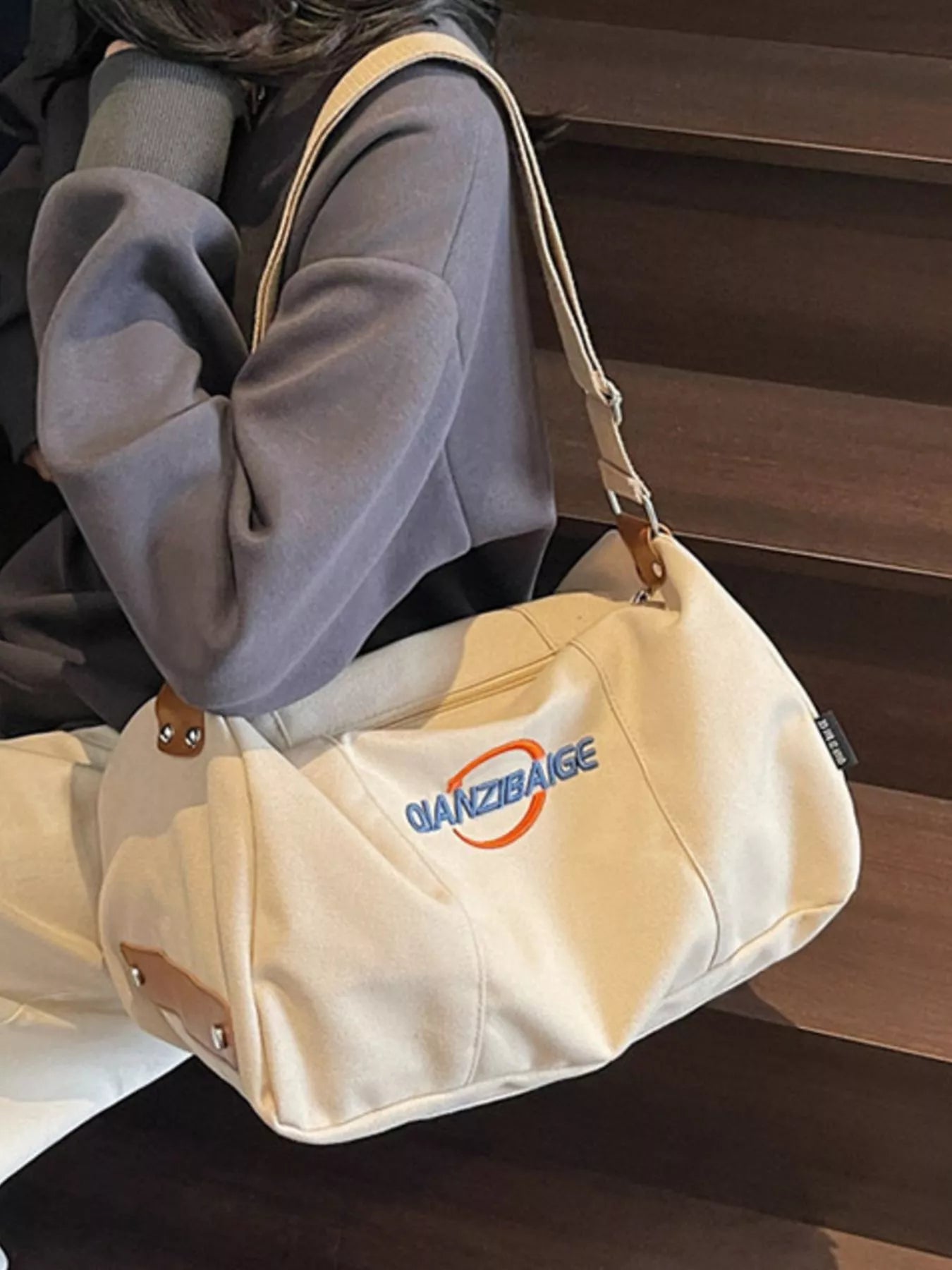 Canvas Duffel Bag with Adjustable Shoulder Strap - Beige / ONESIZE