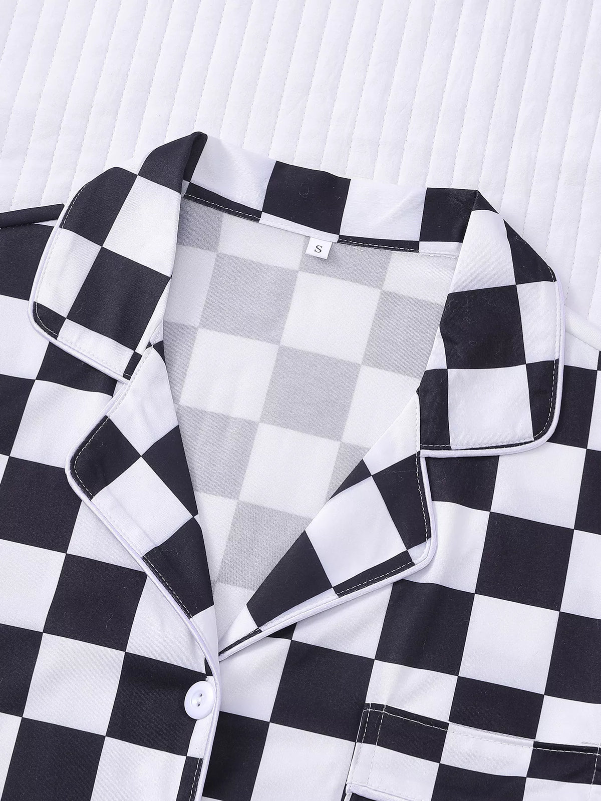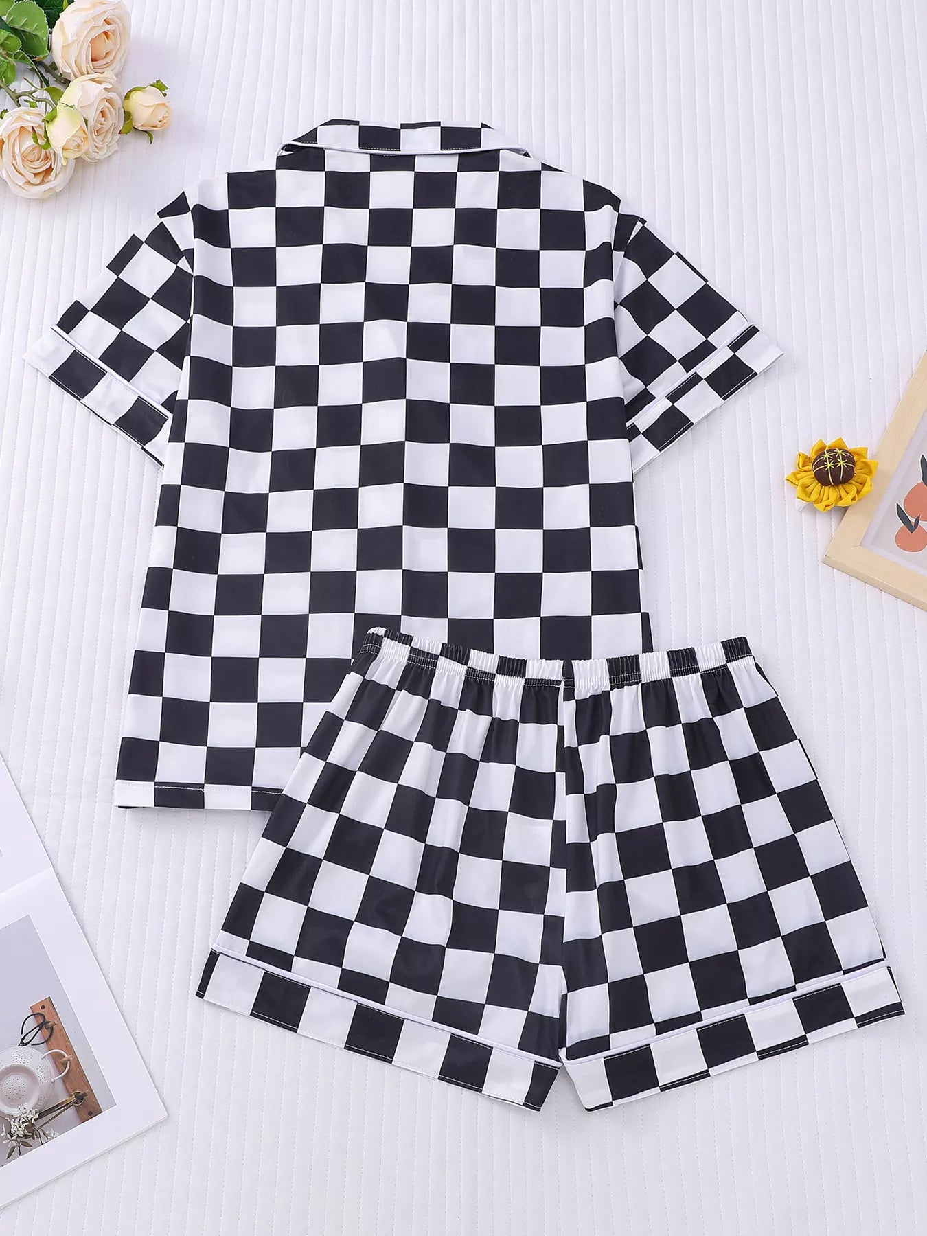 Checkered Print Button Up Top and Shorts Lounge Set